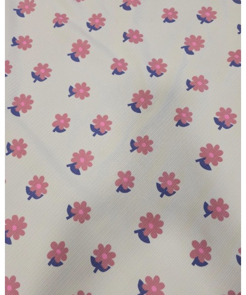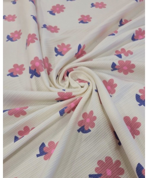 Malha Algodão Canelado miúdo estampado Floral Base cor pérolaIdeal para Vestidos, Camisolas, Costura criativa1.20mt LarguraApenas 4€/mtStock Limitado