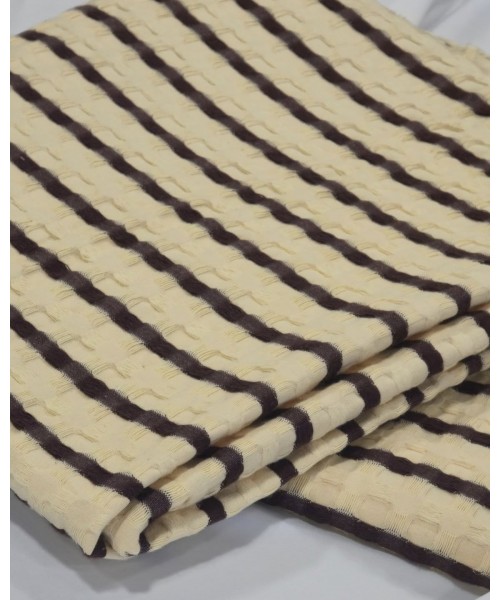 Tecido 100% Algodão efeito waffle Bege Risca Castanho