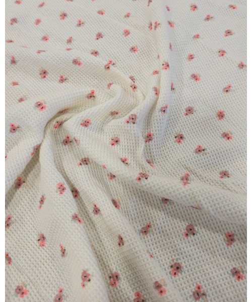 Fantástica Malha Waffle Algodão estampado floral miúdo base pérolaIdeal para Camisolas, Vestidos, Calças1.70mt LarguraApenas 4.50€/mtStock Limitado