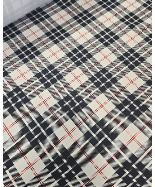 Malha Ponto Roma Xadrez Azul risca vermelha base pérolaIdeal para Calça, vestidos, casacos1.50mt LarguraApenas 4.80€/mt