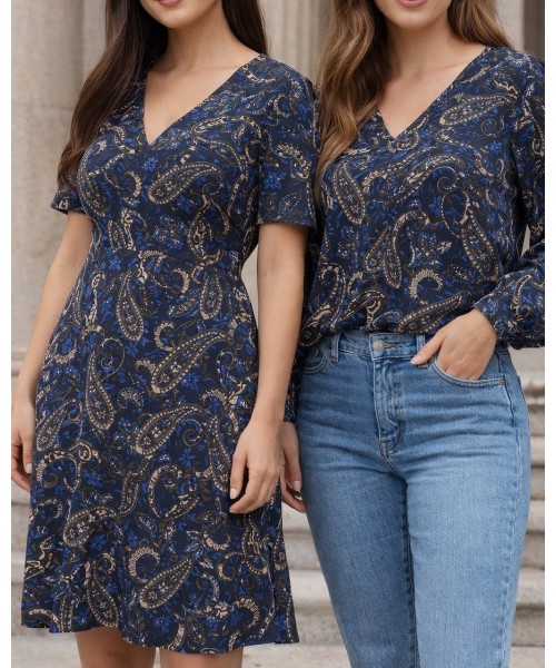 Fantástico Algodão/Viscose Estampado Cornocópias Base Azul marinhoIdeal para Vestidos, Blusas1.50mt largura5.50€/mt